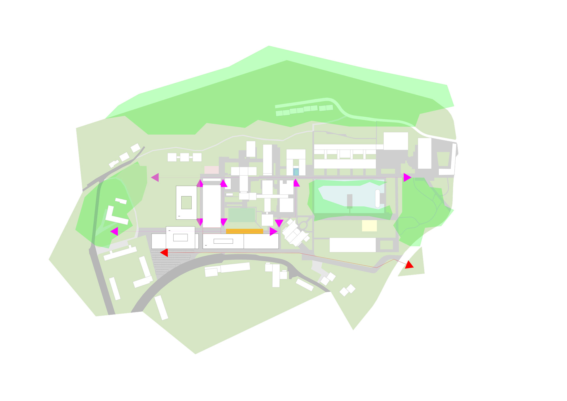 The campus of the Johannes Keppler University has a clear urban planning order in the north. Here, the individual buildings are lined up along the axis that leads from Auhof Castle to the LIT Open Innovation Center. If one approaches the campus from the southwest, it appears as if one were entering it from the rear – in terms of urban planning, no legible order structure can be found.