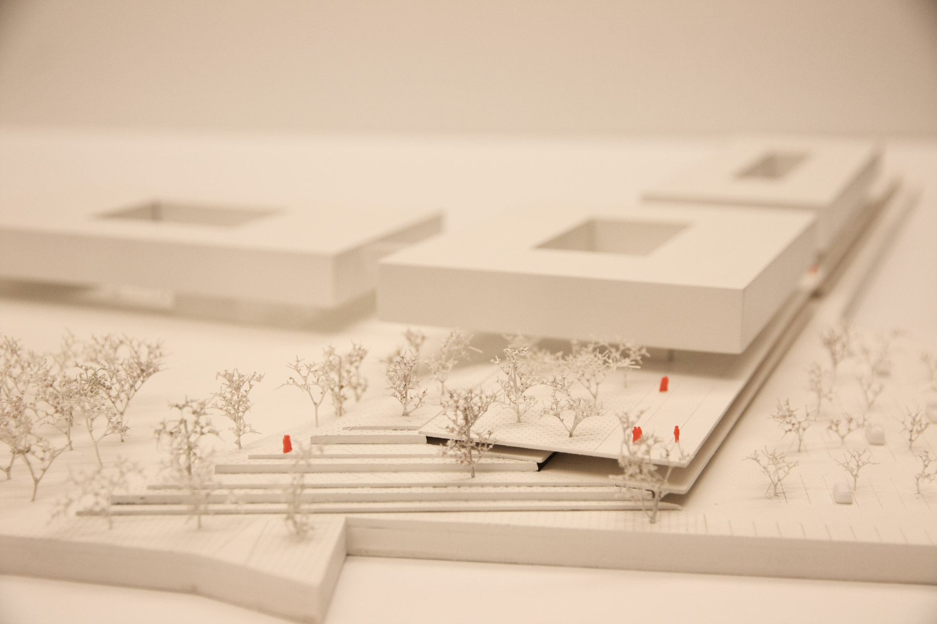 Three floating rings are placed over the embankment and thus form the components of the House of Schools. The public areas of each of the three components are arranged in the base area below the floating rings. The first module houses the Business School, which will be distributed over a total of three floors.