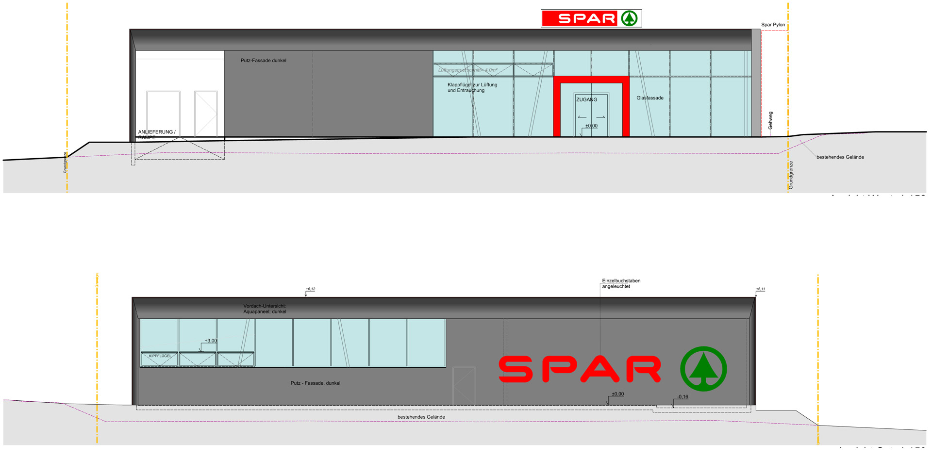 The dialogue between movement, the cars on the road to Premstätten, and standstill, the architecture of the market, is the basis for the design of Spar PS.
