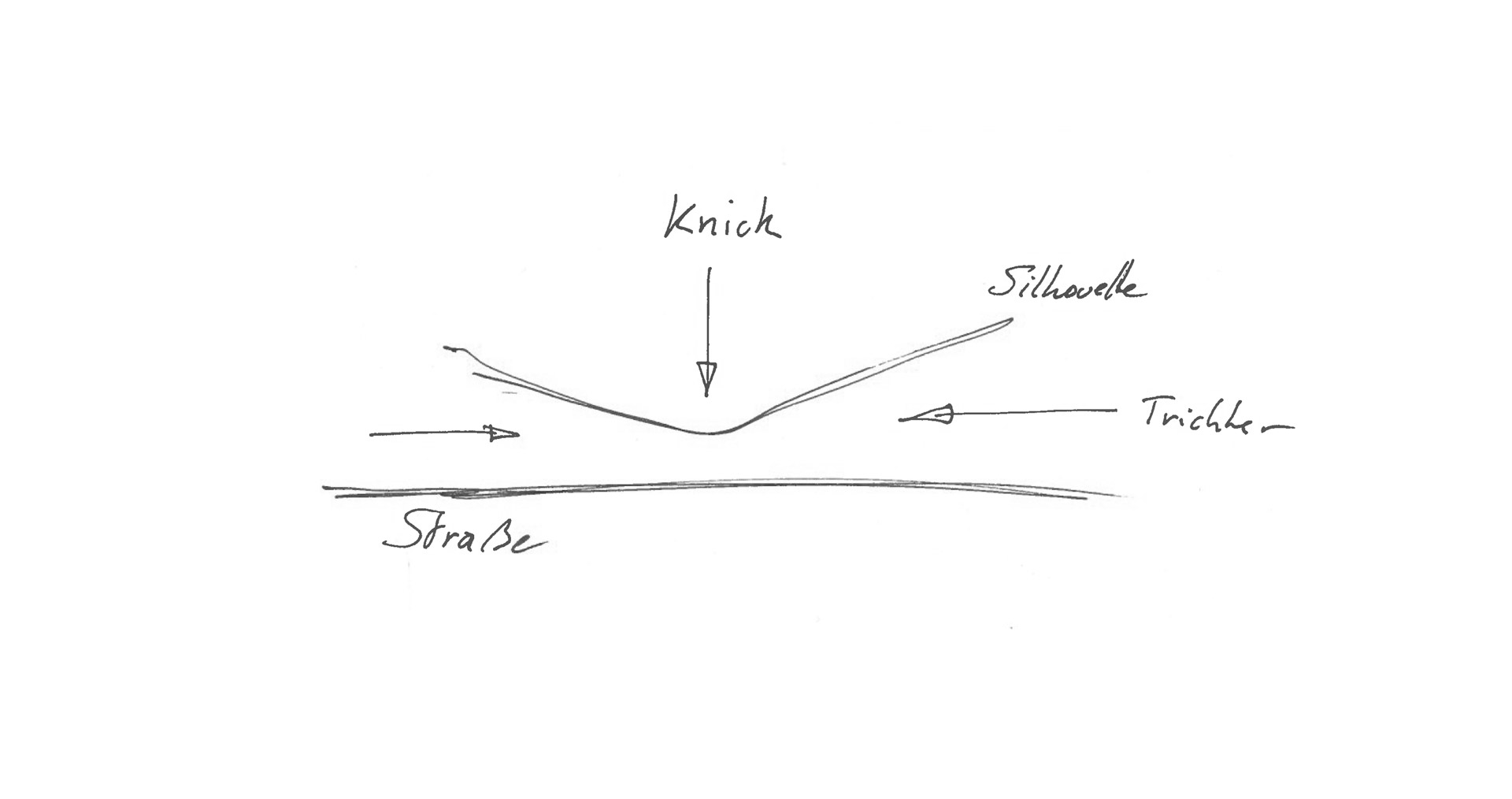 The linear, fast movement on the street is countered by a „kink“ in the silhouette of the store.