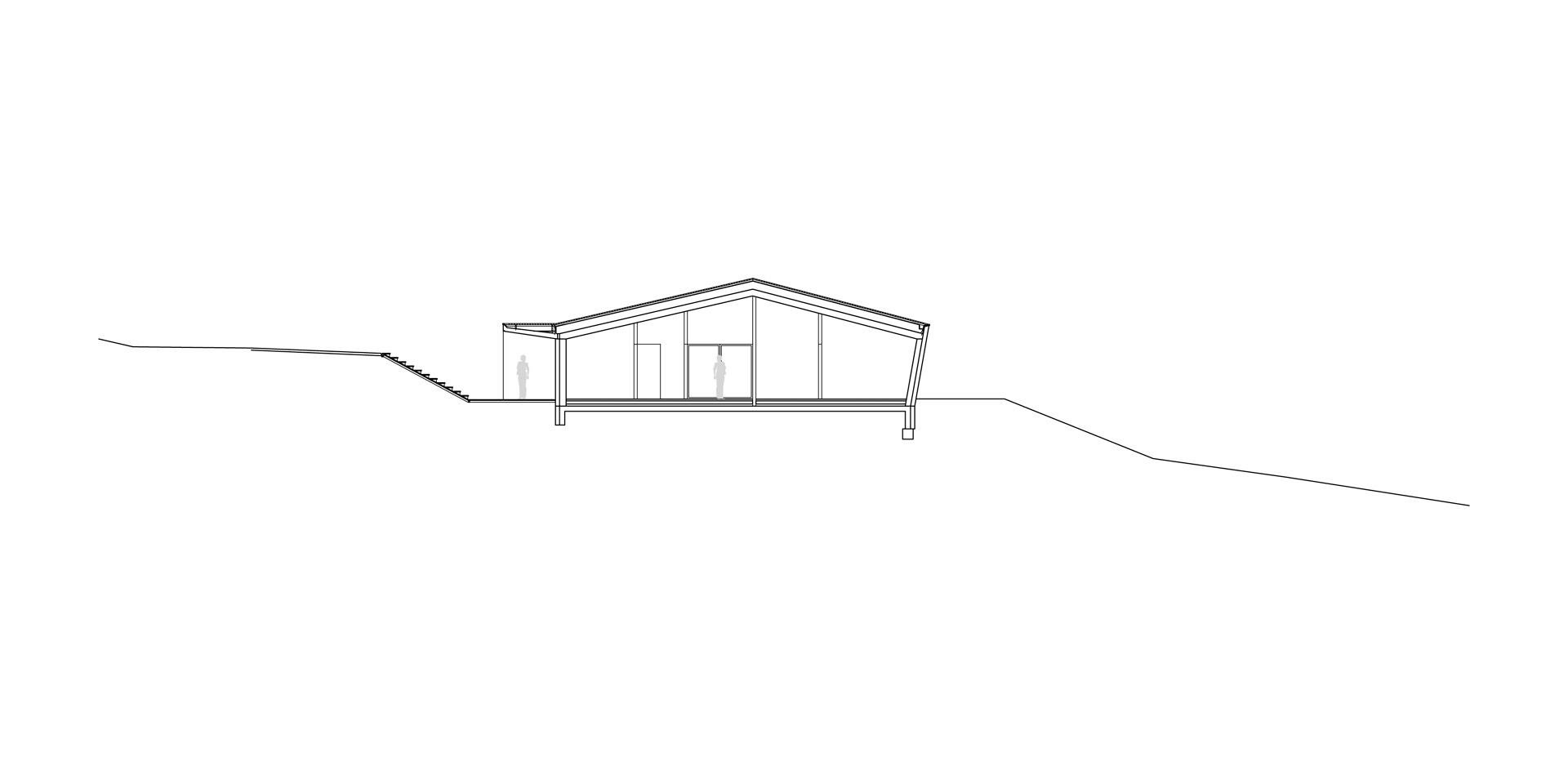 The relatively strict land-use plan, which stipulated a saddle roof with a designated inclination, presented a further challenge. A folding begins at the seating platform on the southern terrace over the outside walls, continues over the roof, covers the building structure and thereby forms a “saddle roof” without taking on the appearance of a conventional saddle roof.